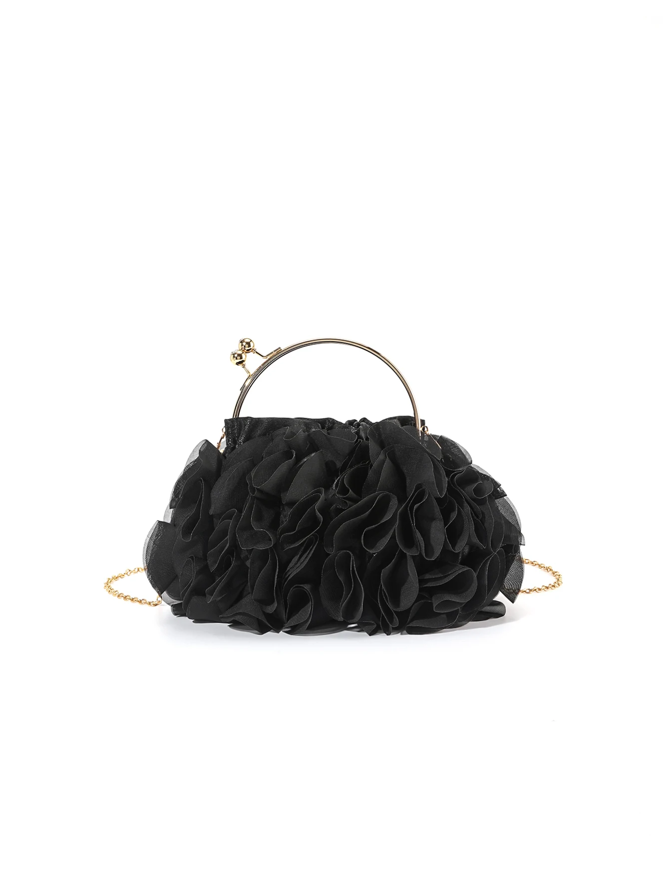 Craquez pour notre Sac À Main De Soirée Noir Style Fleur En Organza Avec Anse Dorée