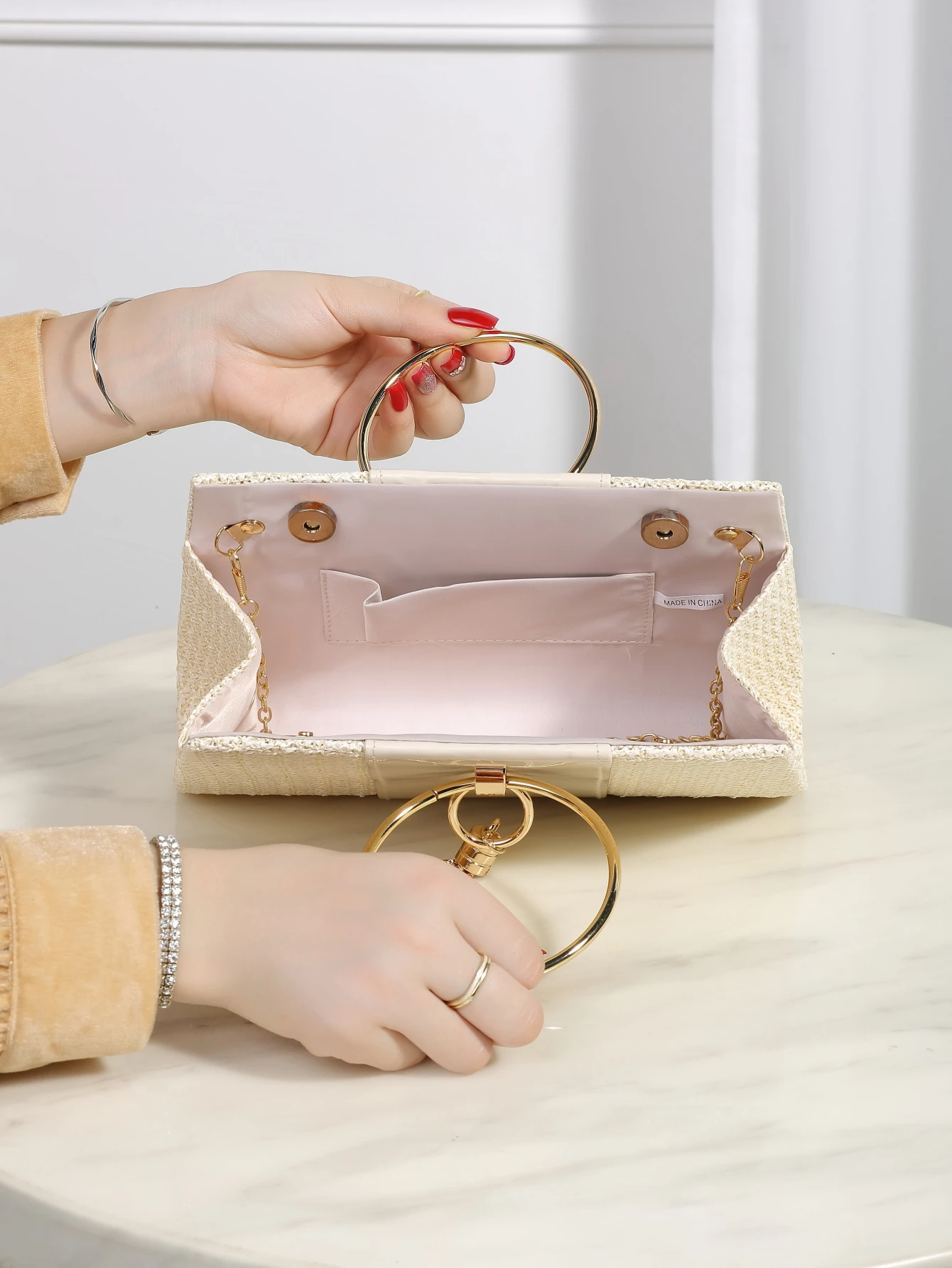 Ce sac à main n’est pas seulement élégant, il est aussi pratique, idéal pour diverses occasions telles que les journées à la plage, les sorties entre amis ou des soirées d’été. Doté d’anses dorées et d’une pampille, il combine confort et style tout en ajoutant une touche sophistiquée à votre ensemble. Avec cet accessoire de mode, vous serez prête à profiter pleinement de vos aventures estivales.