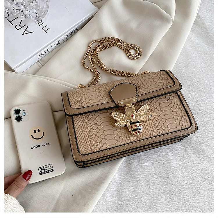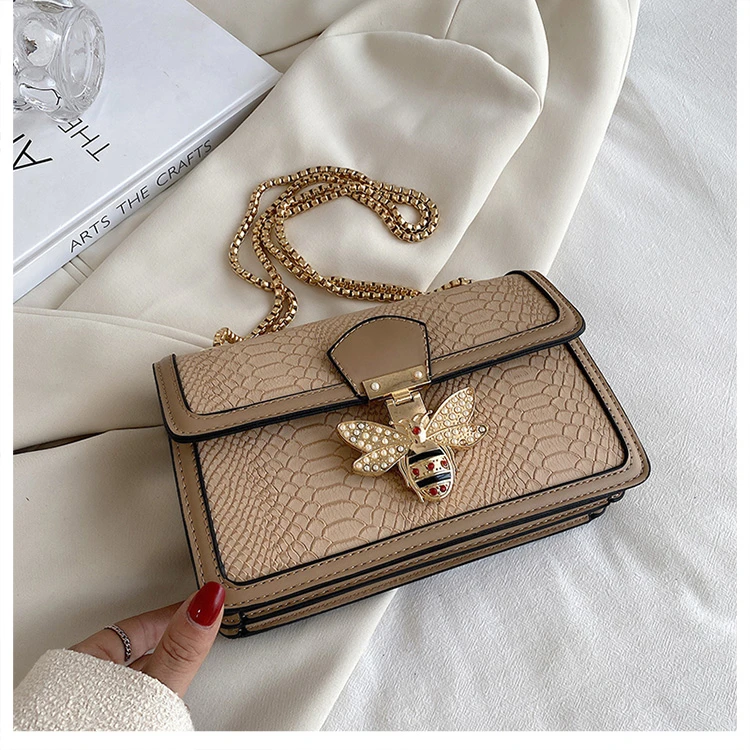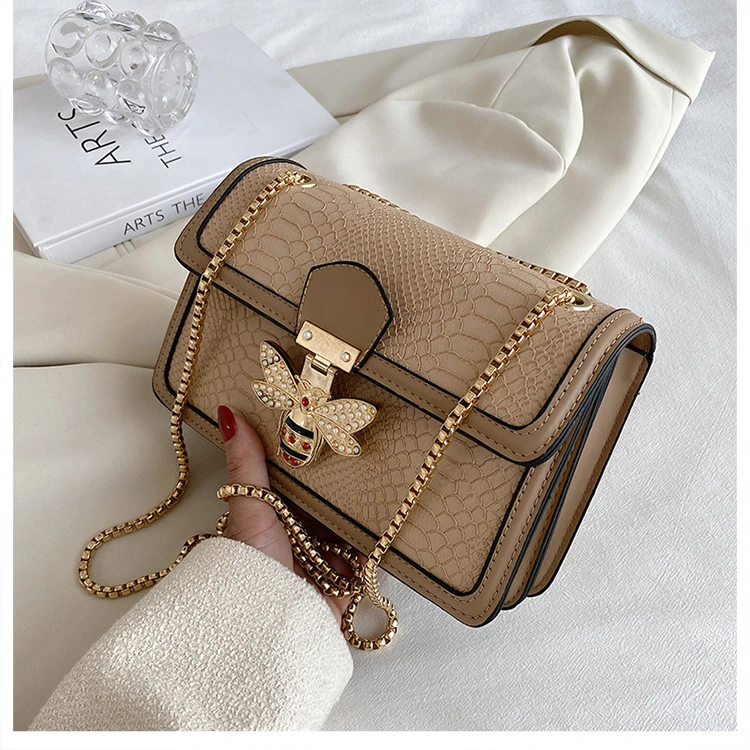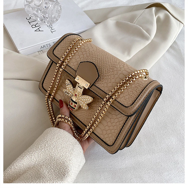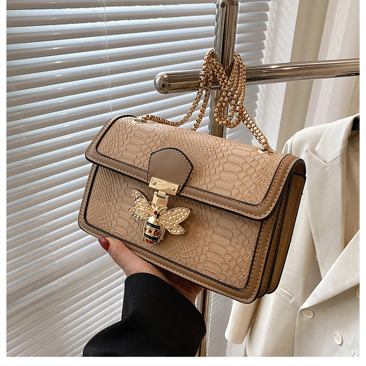 Découvrez le sac à main en cuir beige effet python – fermoir abeille dorée luxe, l’accessoire incontournable qui ajoutera une touche d’élégance à toutes vos tenues et fera de vous l’icône du style au quotidien.