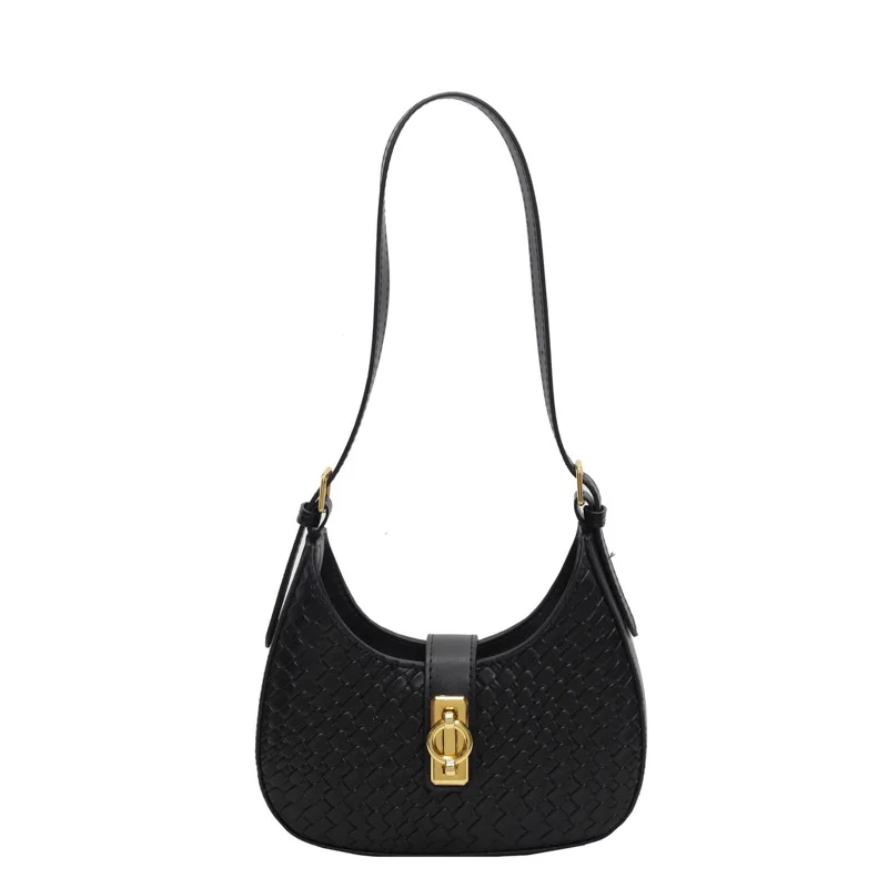 Sac À Main En Cuir Noir Effet Tressé Avec Boucle Dorée – Élégant Et Estival : à ne pas manquer