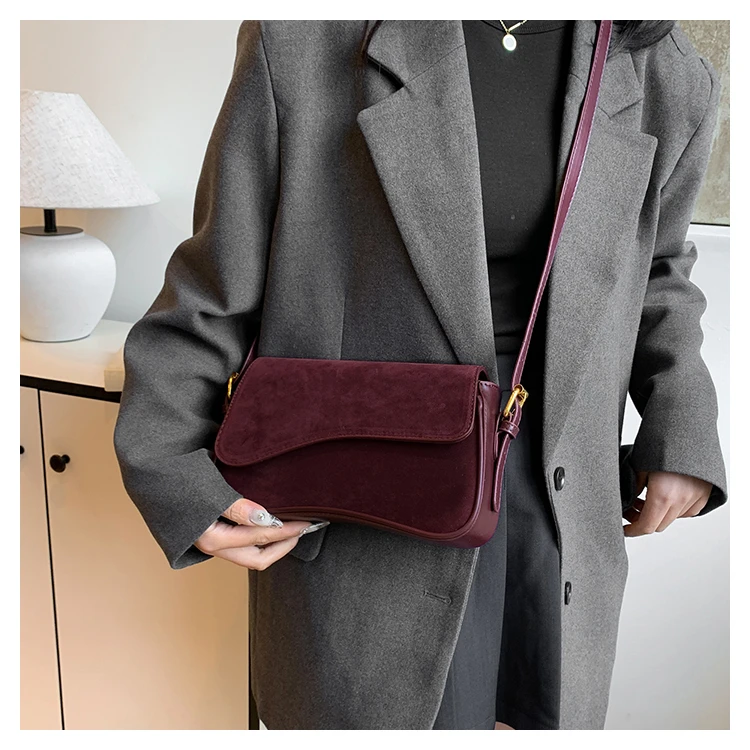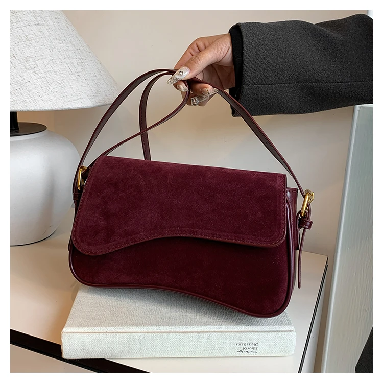 Sac À Main En Daim Bordeaux – Bandoulière Vintage Chic : votre choix incontournable