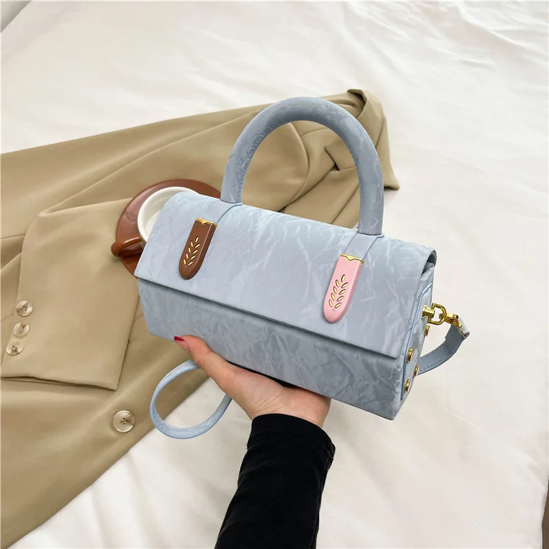 Découvrez le style unique de notre sac à main en daim grisbleu, un véritable atout pour rehausser toutes vos tenues. Avec sa conception cylindrique, ce sac se distingue par son élégance moderne, tout en s’harmonisant parfaitement avec différents looks, que ce soit pour une sortie décontractée ou un événement plus formel.