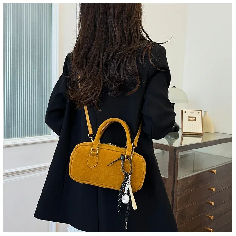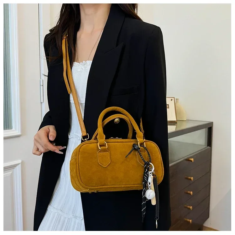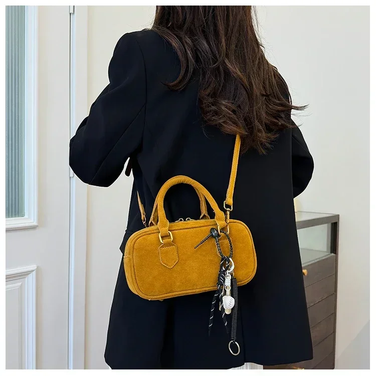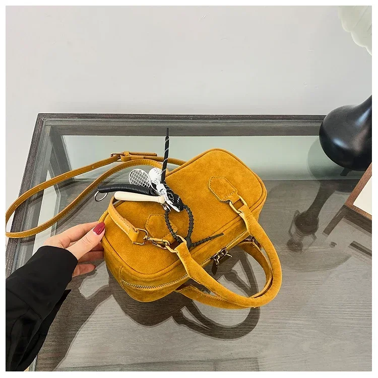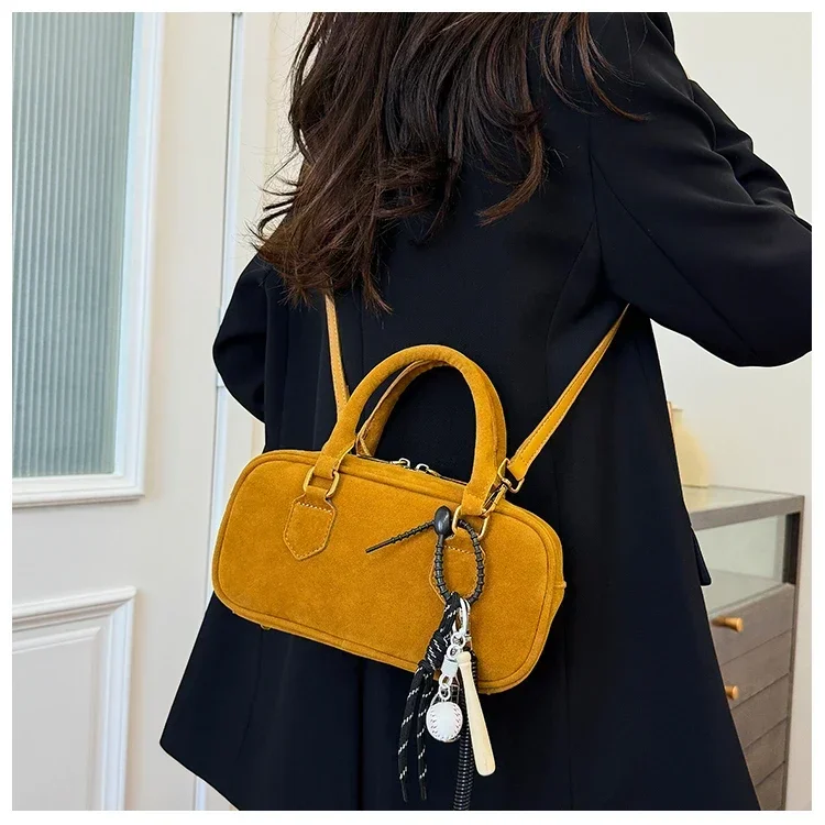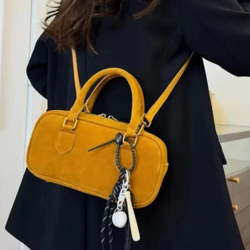 Le meilleur de Sac À Main En Daim Jaune – Élégant Avec Bandoulière Et Porte-clés
