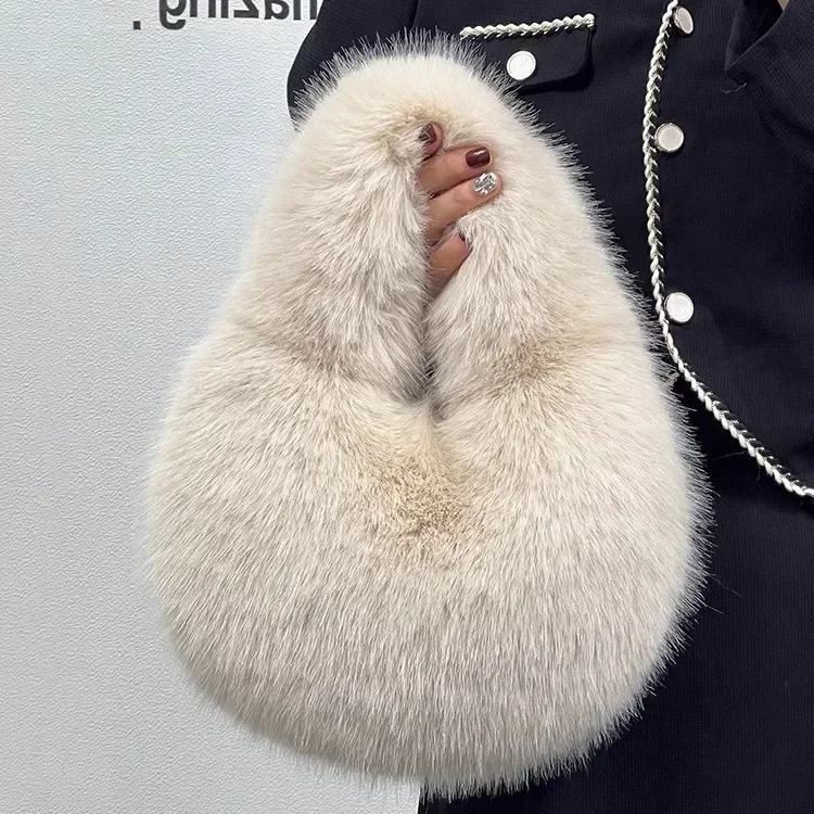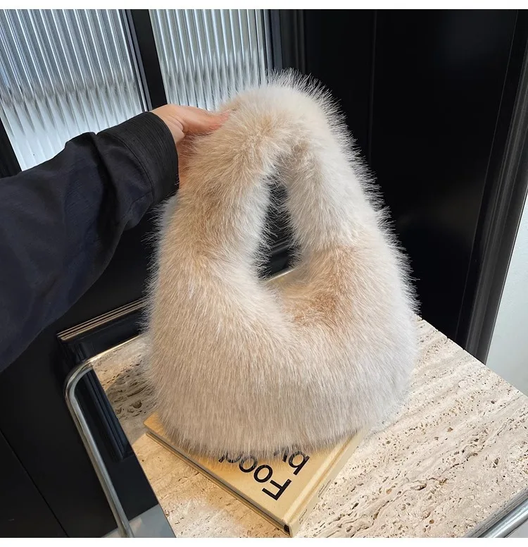Élégance hivernale instantanée : Sac À Main En Fausse Fourrure Beige – Style Hiver Luxe Doux Et Élégant