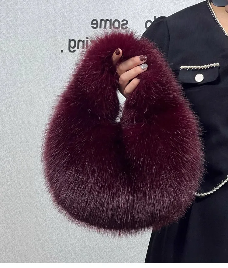 Sac à main en fausse fourrure bordeaux – modèle hobo doux tendance et chaleureux pour l’hiver : l’accessoire qui signale votre style