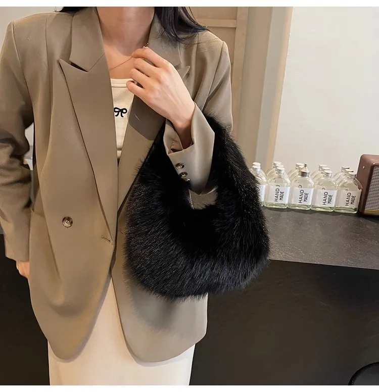 Sac à main en fausse fourrure noire – style hiver luxe doux et élégant