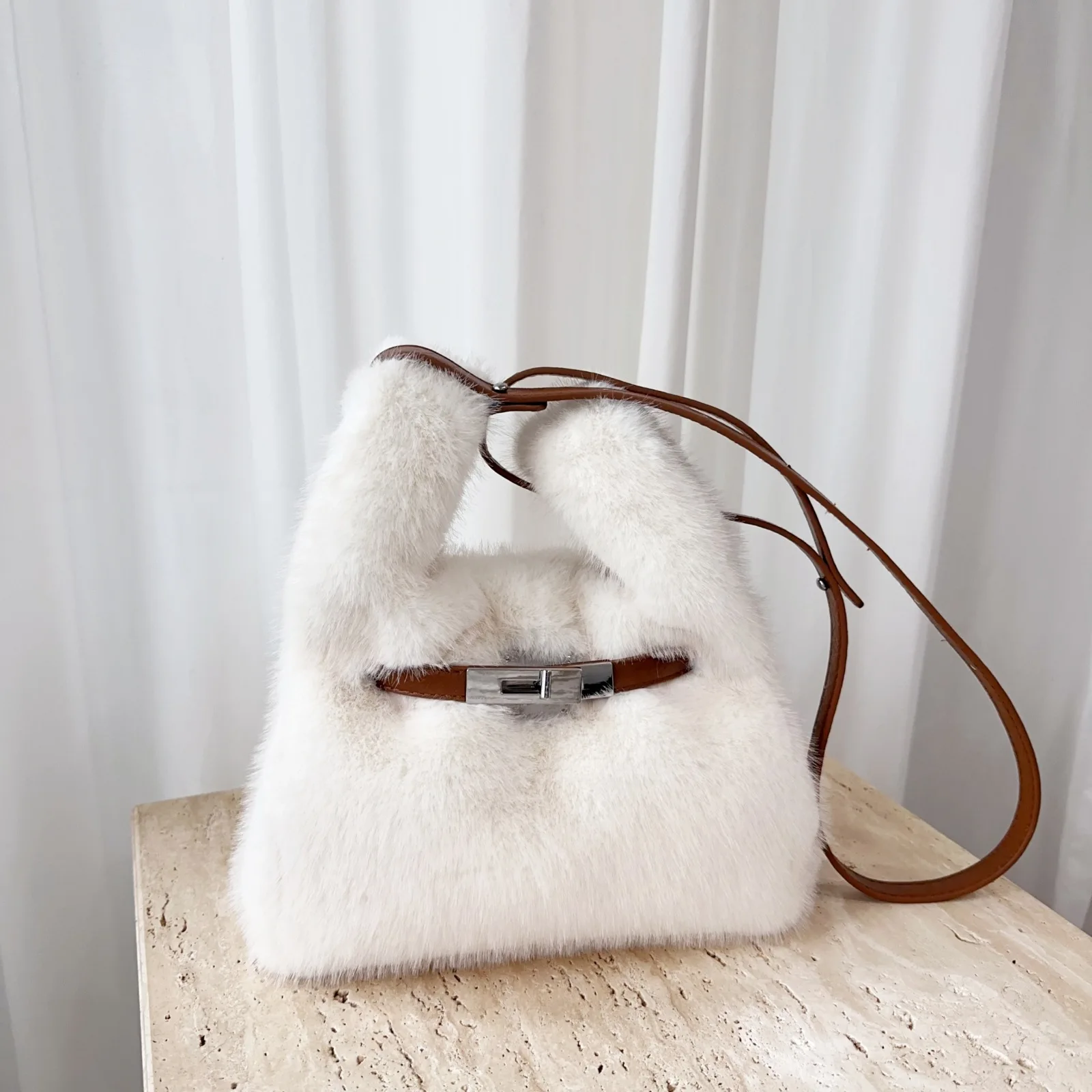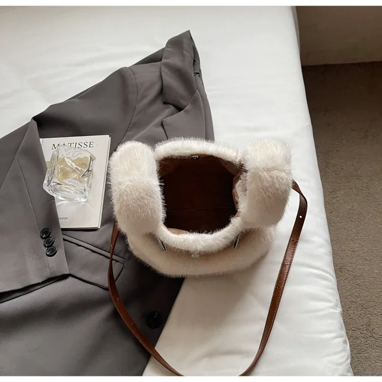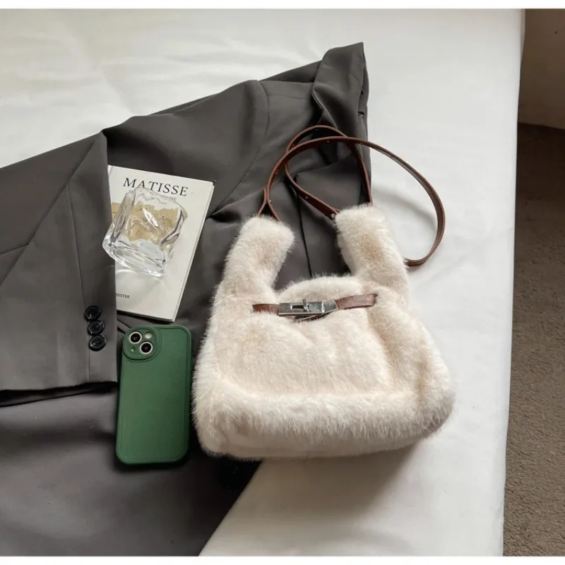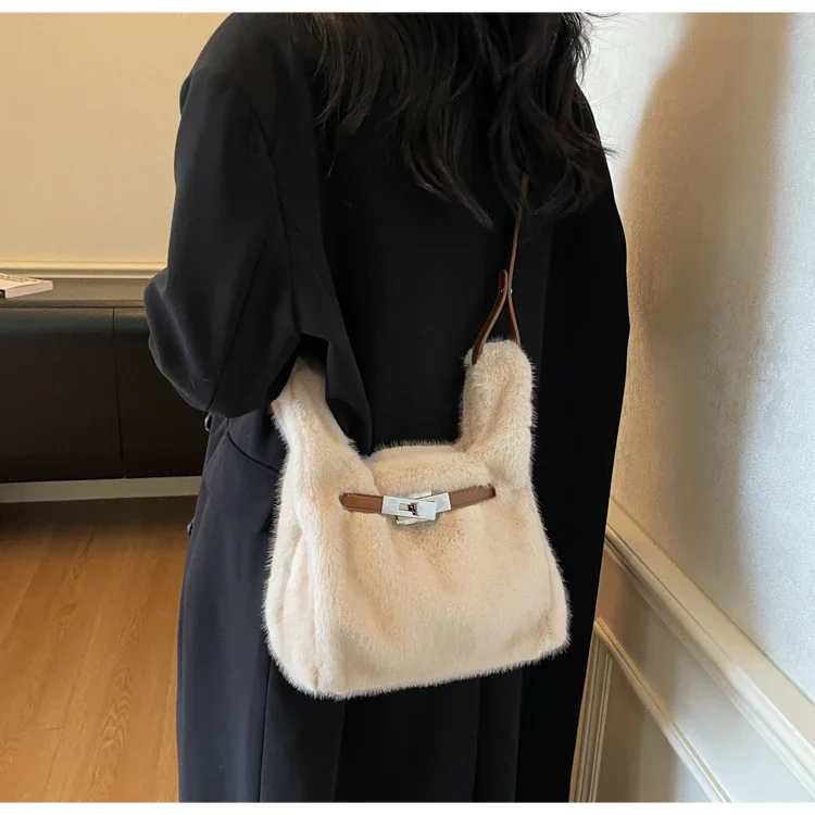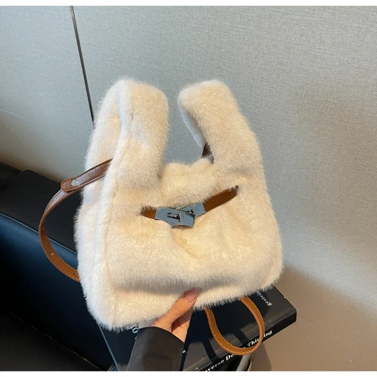 Sac À Main En Fourrure Synthétique Blanc – Sac Épaule Doux Et Tendance Avec Anse Réglable : un must-have