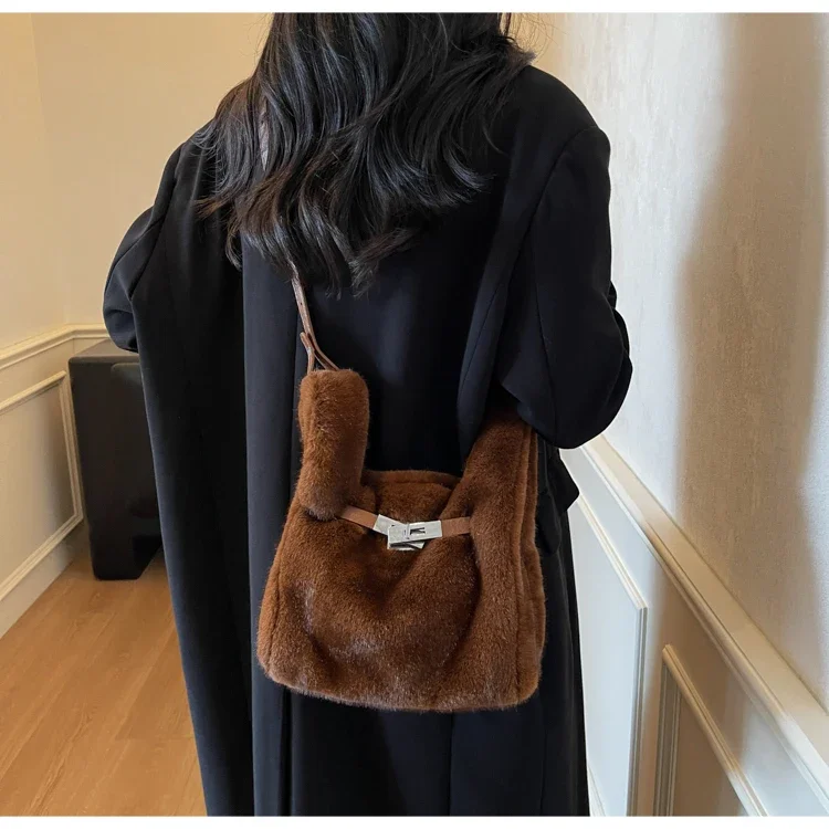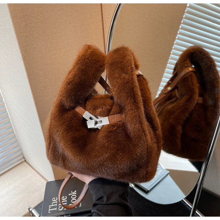 Sac À Main En Fourrure Synthétique Marron – Sac Épaule Doux Et Tendance Avec Anse Réglable : un must-have