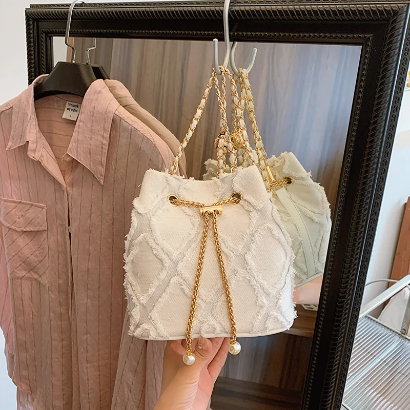 Un style unique avec Sac À Main En Jean Blanc Avec Chaîne Dorée – Style Chic Et Décontracté