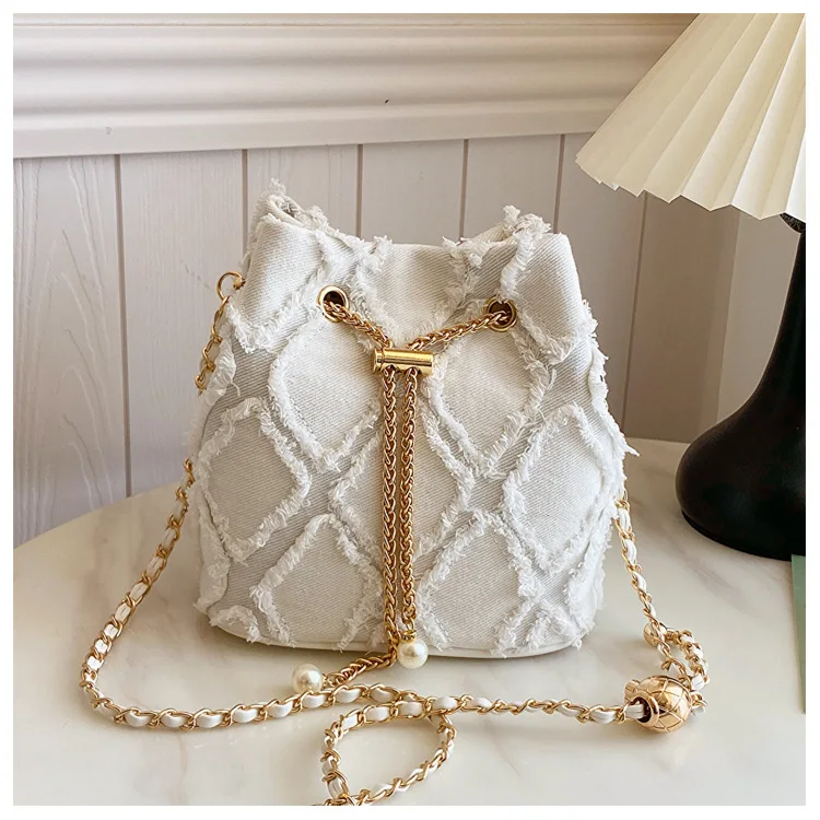 Découvrez le charme du Sac À Main En Jean Blanc Avec Chaîne Dorée