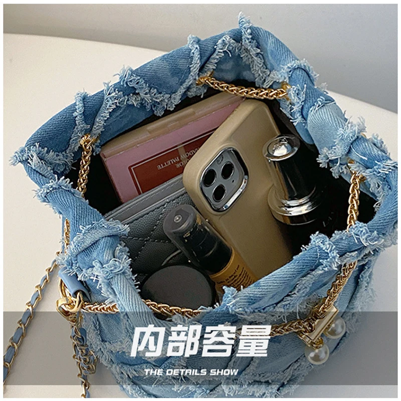 L’incontournable Sac À Main En Jean Bleu Avec Chaîne Dorée – Style Chic Et Décontracté