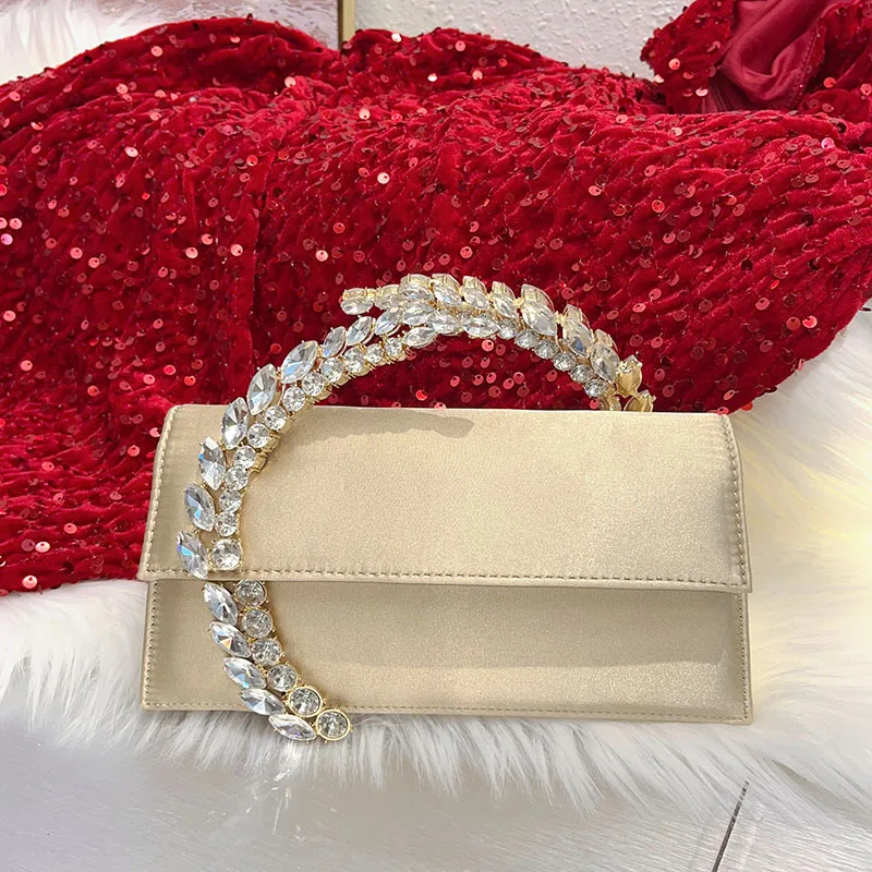 L’essentiel : Sac À Main En Velours Doré Avec Poignée Strass Cristal – Pochette Élégante Soirée Mariage