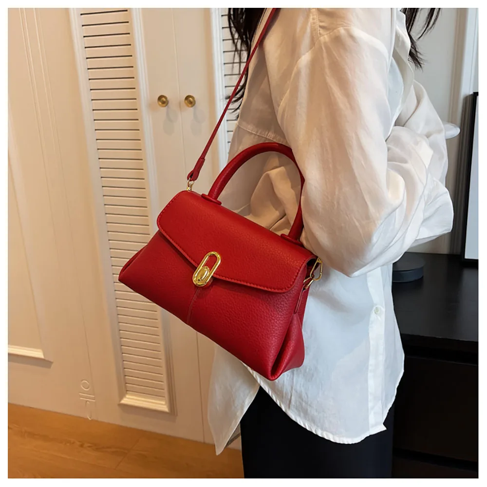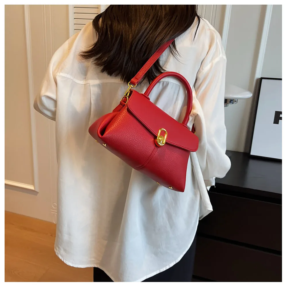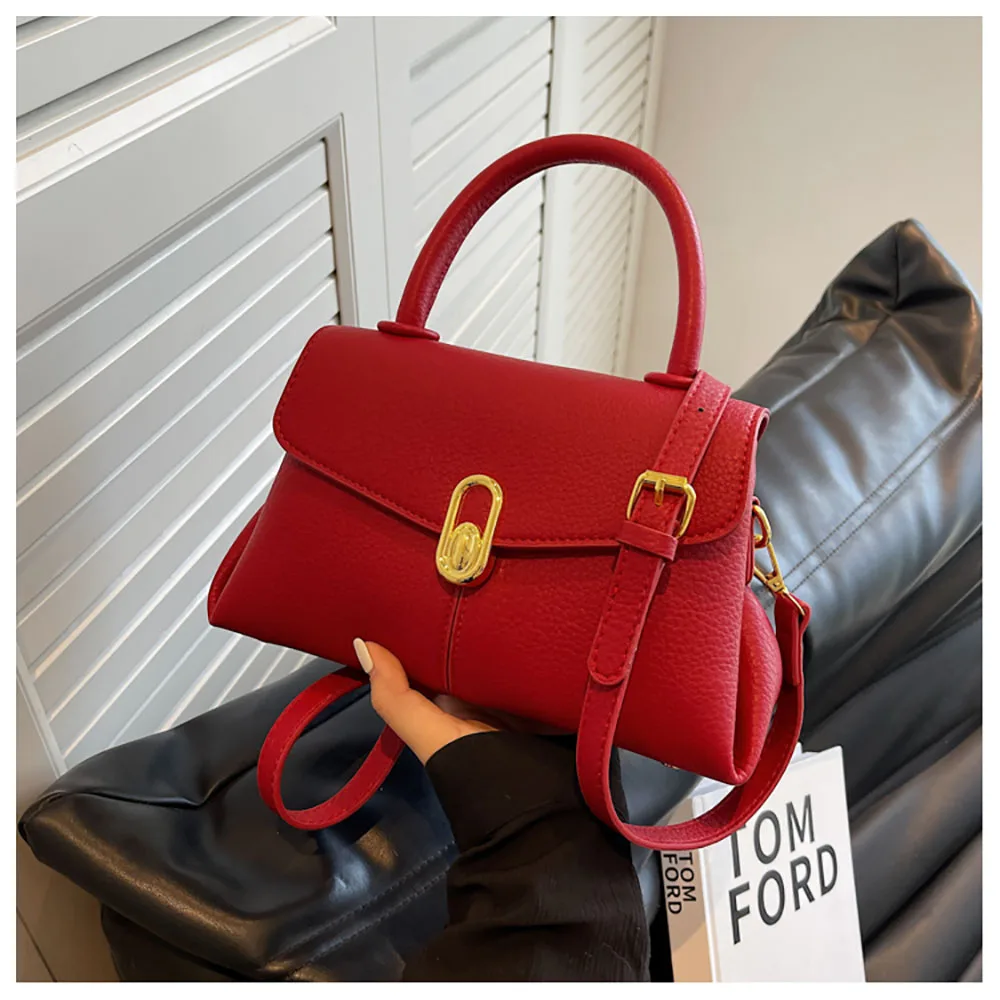 Laissez-vous tenter par Sac À Main Femme Rouge– Élégant Avec Fermoir Doré Amp Anse Rigide