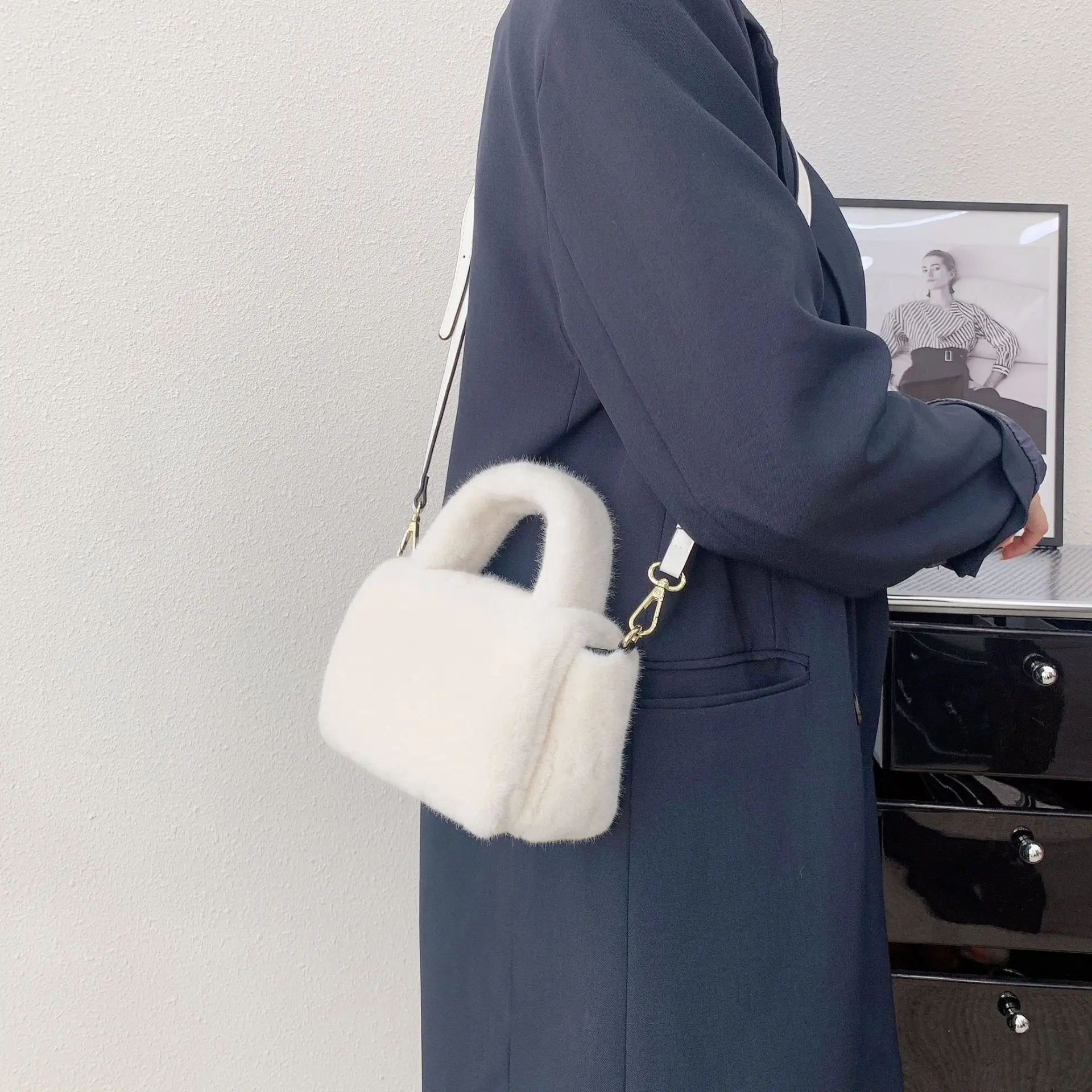 Sac À Main Fourrure Blanc – Sac Hiver Doux Et Chic Avec Bandoulière Amovible