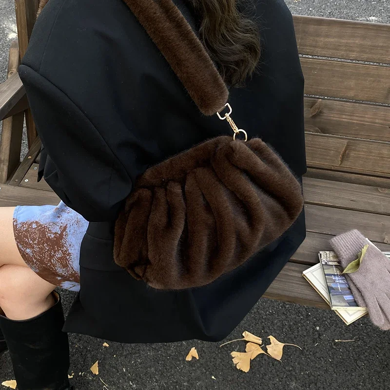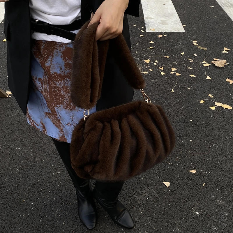 Chic hivernal Sac À Main Fourrure Marron – Sac Hiver Doux À Anse Large Et Style Bouffant