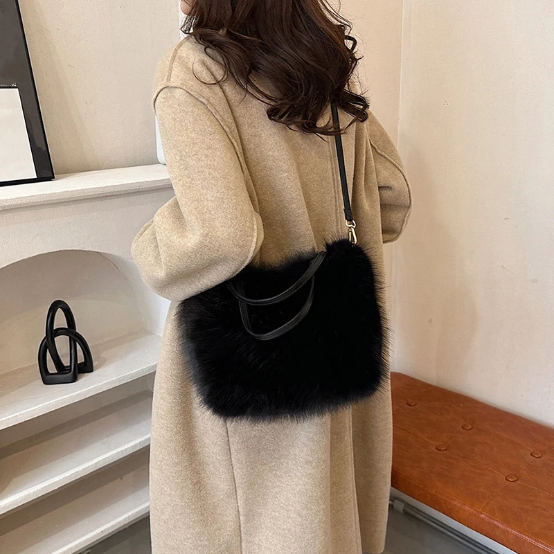 Faites sensation cet hiver avec le Sac À Main Fourrure Noire – Hivernal Doux Et Élégant