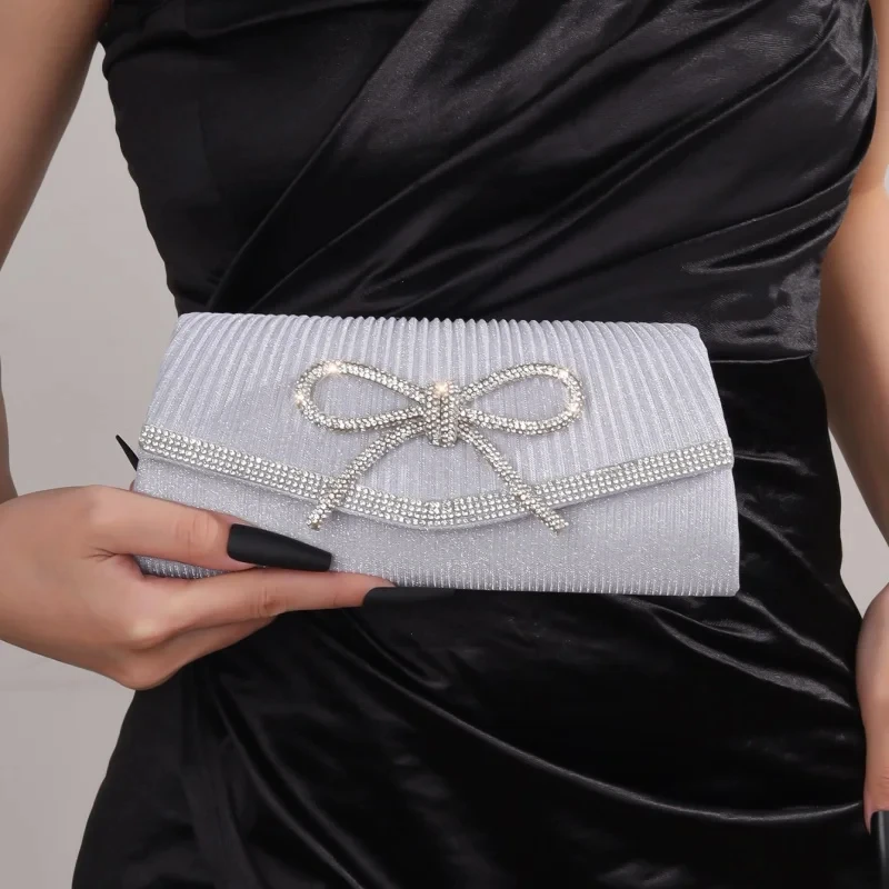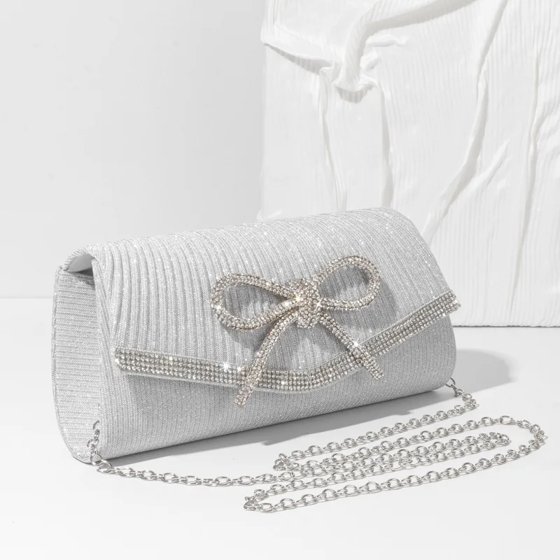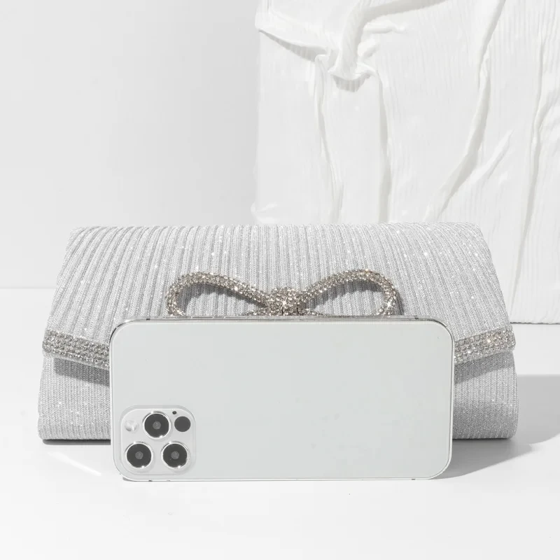 Sac À Main Soirée Argenté – Chic Avec Strass Et Nœud En Cristal : pour toutes vos envies