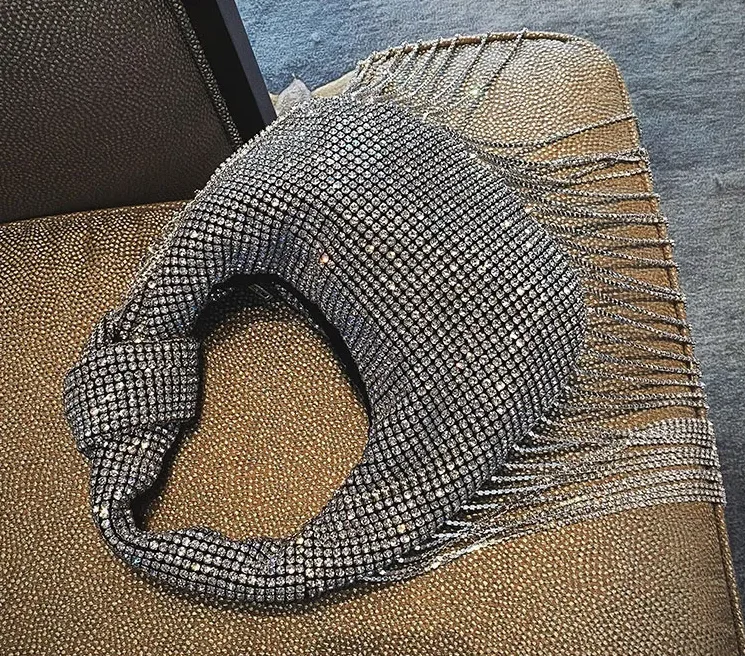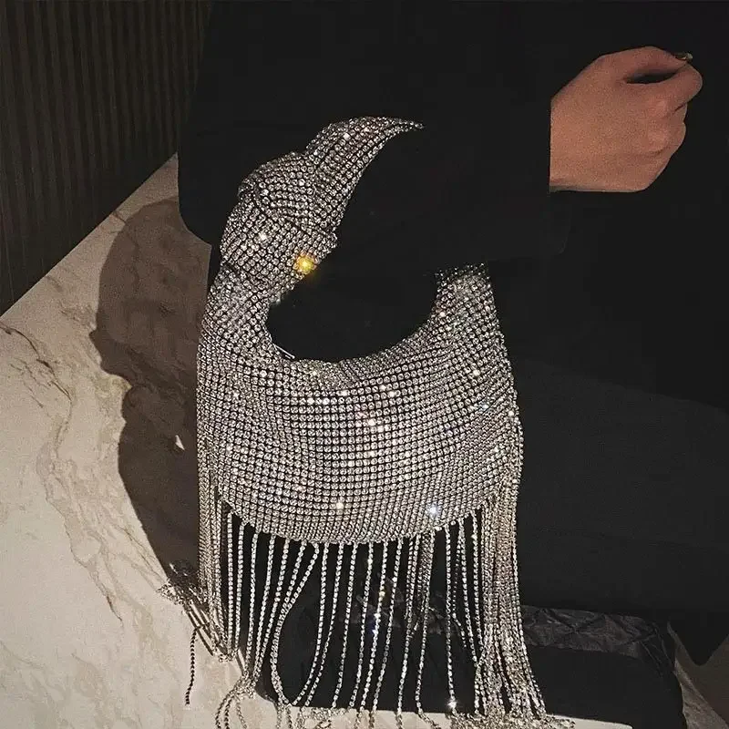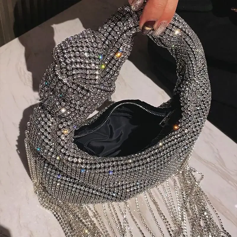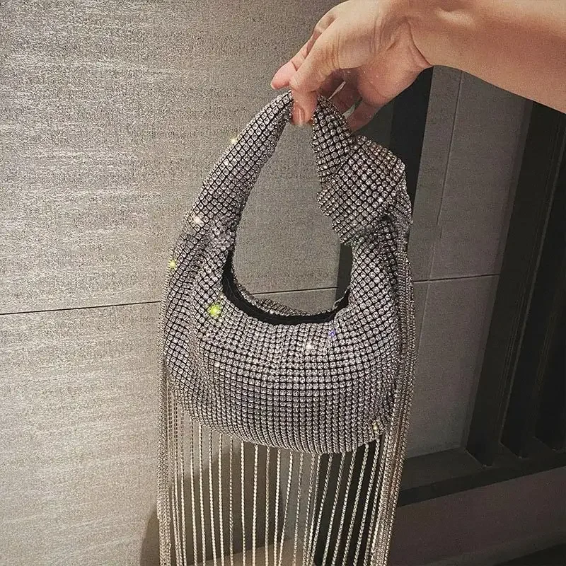 Le compagnon idéal : Sac À Main Soirée En Strass Argenté Avec Franges – Style Glamour Et Festif