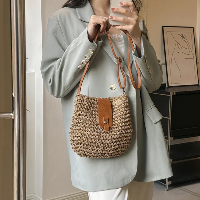 Laissez-vous séduire par le sac en paille maronné tressé