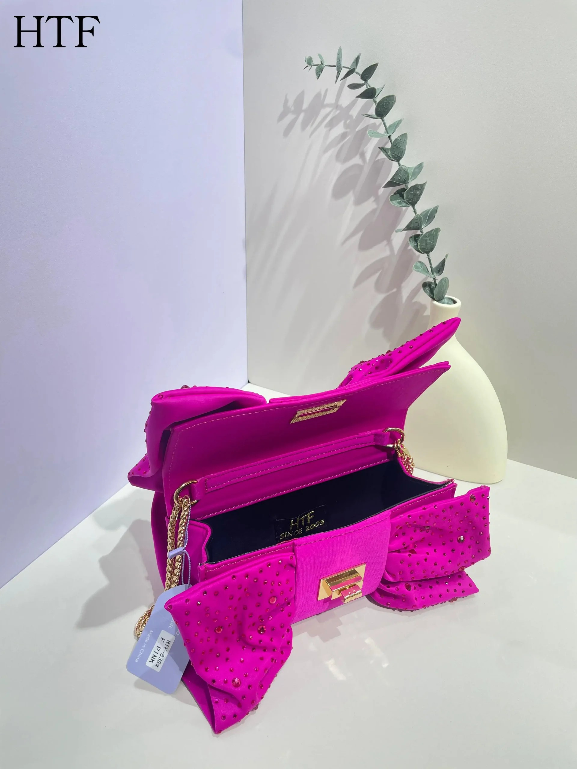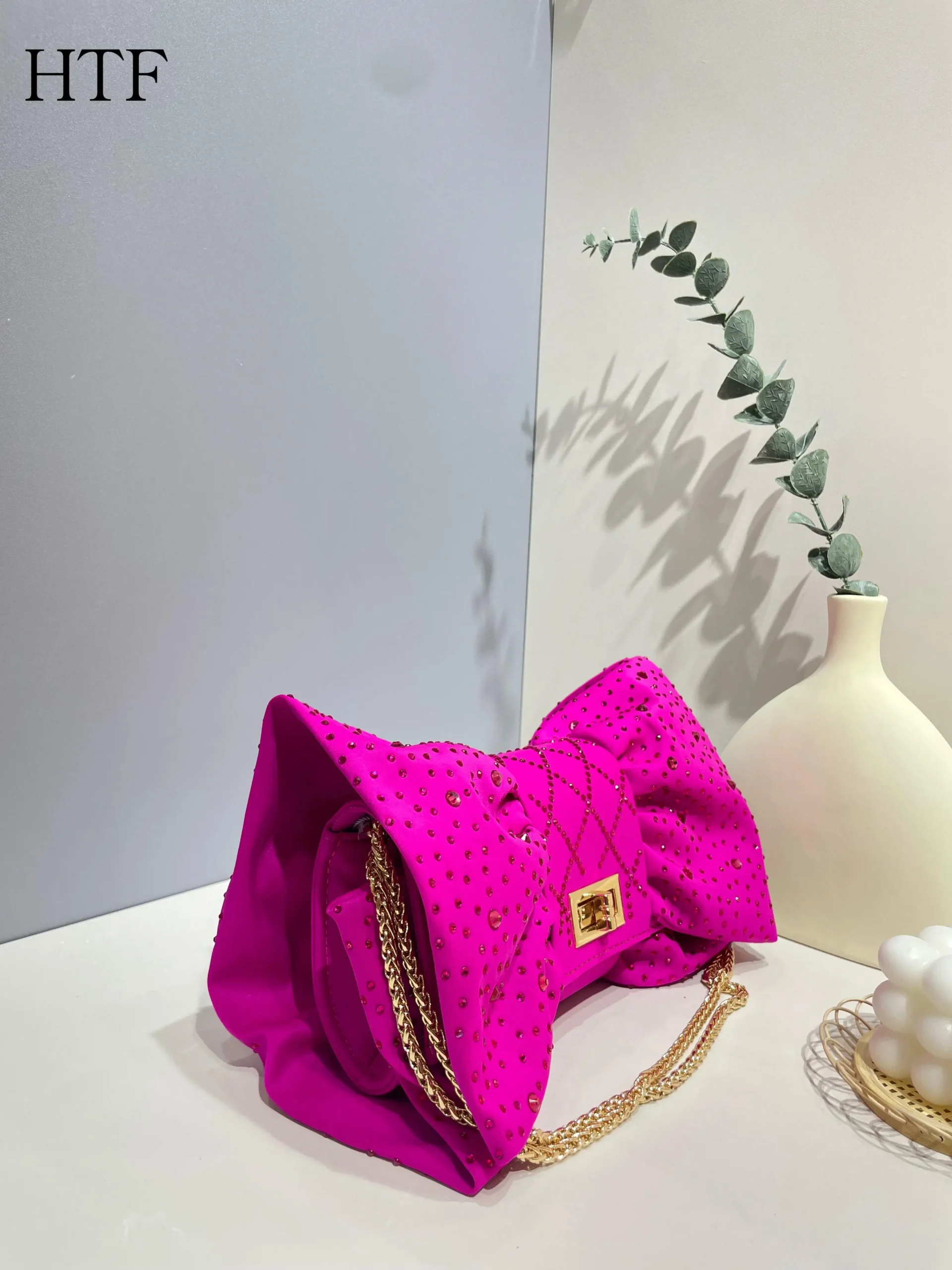 Faites la différence avec Sac Soirée Rose Fuchsia Nœud Papillon – Pochette Bandoulière Femme Chic Strassée